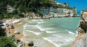 Nome dialettale che significa piccola spiaggia da alcuni chiamata anche “Mappamondoâ€, è l’ultimo tratto della baia di Peschici ed è ubicata oltre un grosso masso roccioso che la “nascondeâ€. Di sabbia fine mista a ghiaia, con mare digradante, è di facile accesso per mezzo di una passerella che la collega alla spiaggia della vicina Marina di Peschici. Da sempre scelta da chi ama una maggiore privacy, è protetta dai venti meridionali e a metà pomeriggio essendo in ombra offre una gradevole frescura